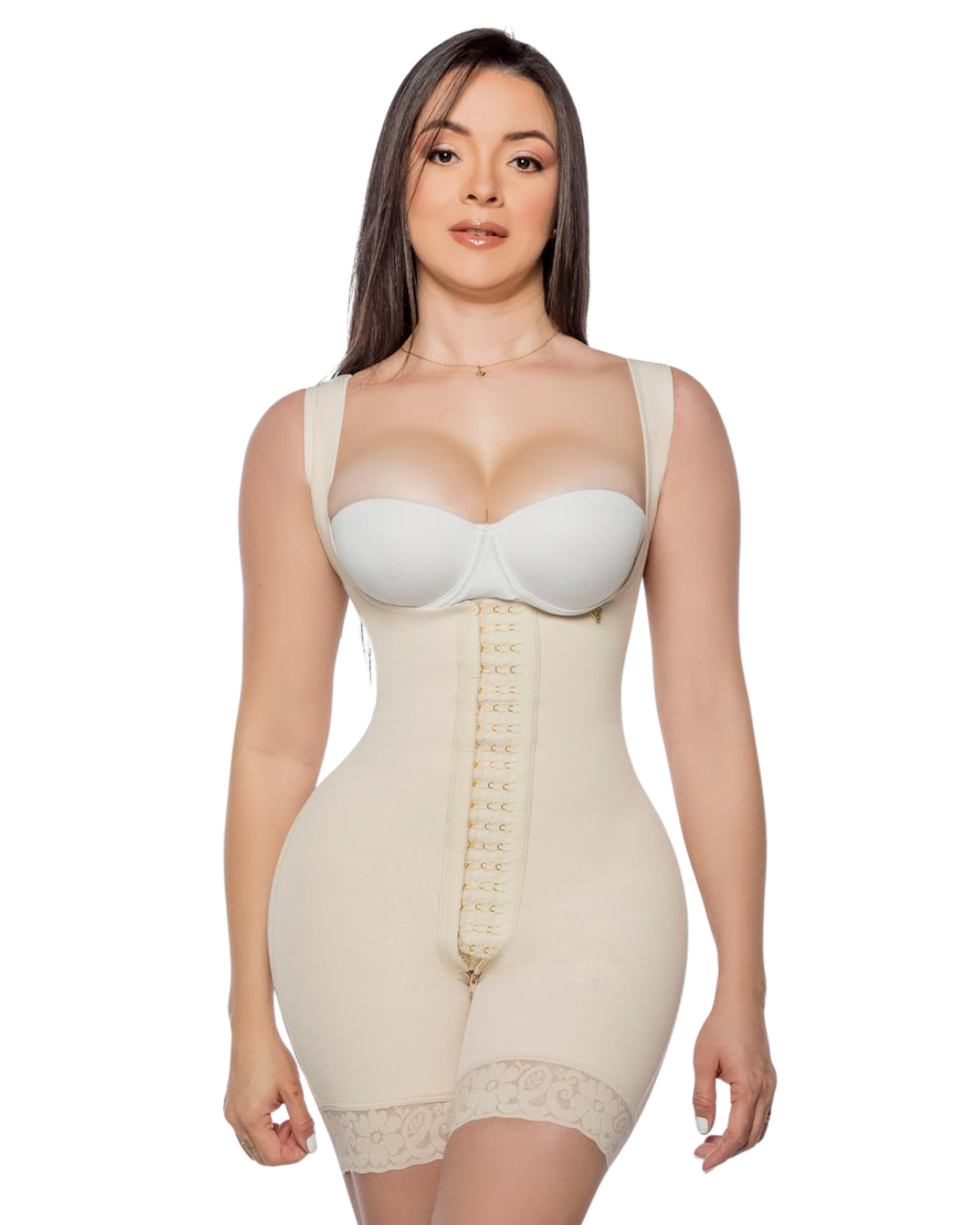 Faja Media Pierna con Gafe y Hombros – 3 Niveles de Broches | Cola Invisible | Cierre Perineal | Busto al Aire INV-09
